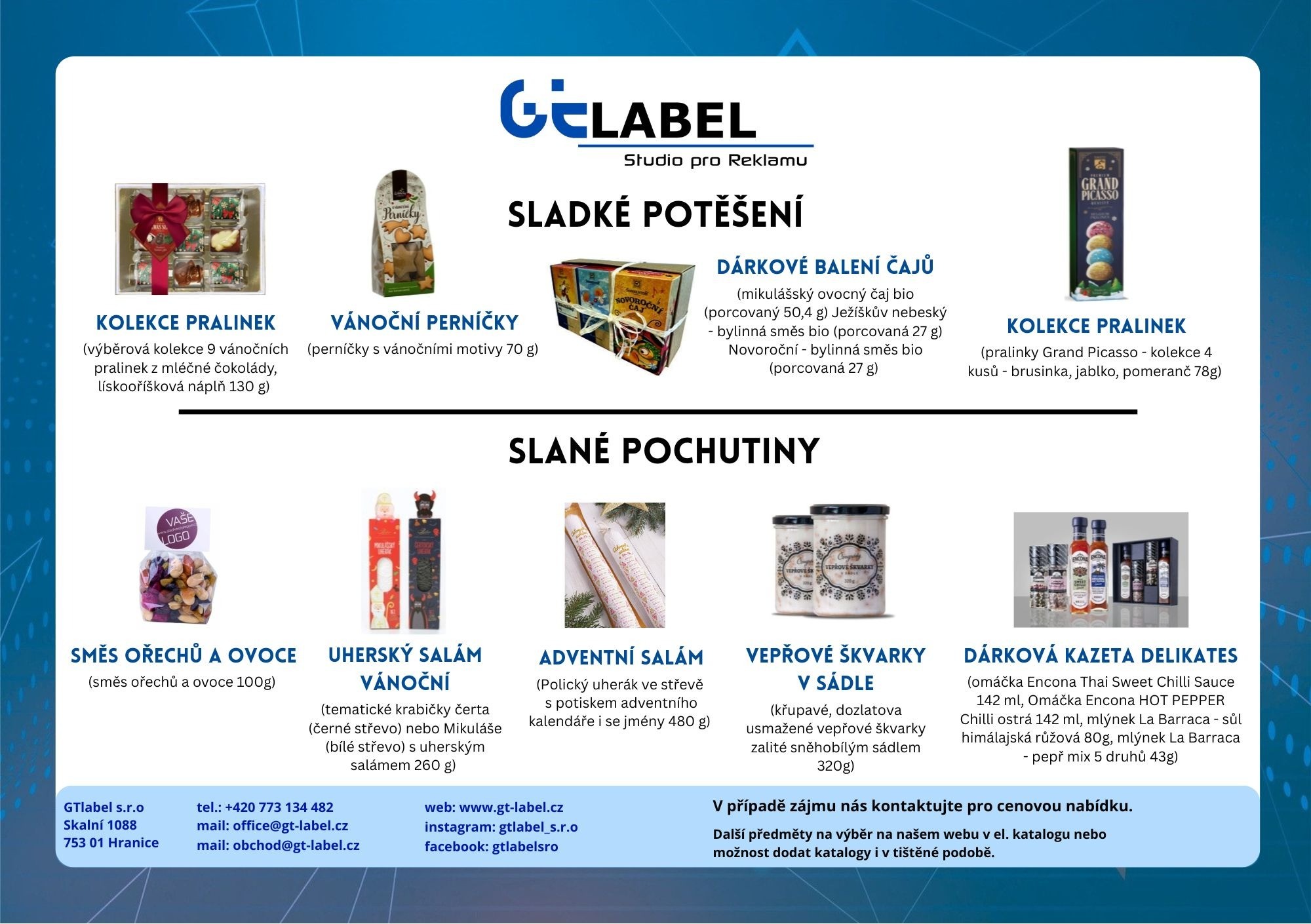 Katalog dárkových předmětů a pochutin.